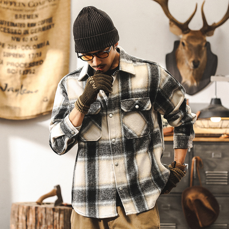 美式復古600g重磅加厚格子襯衫男長袖冬季潮牌寬鬆磨毛秋冬外套男