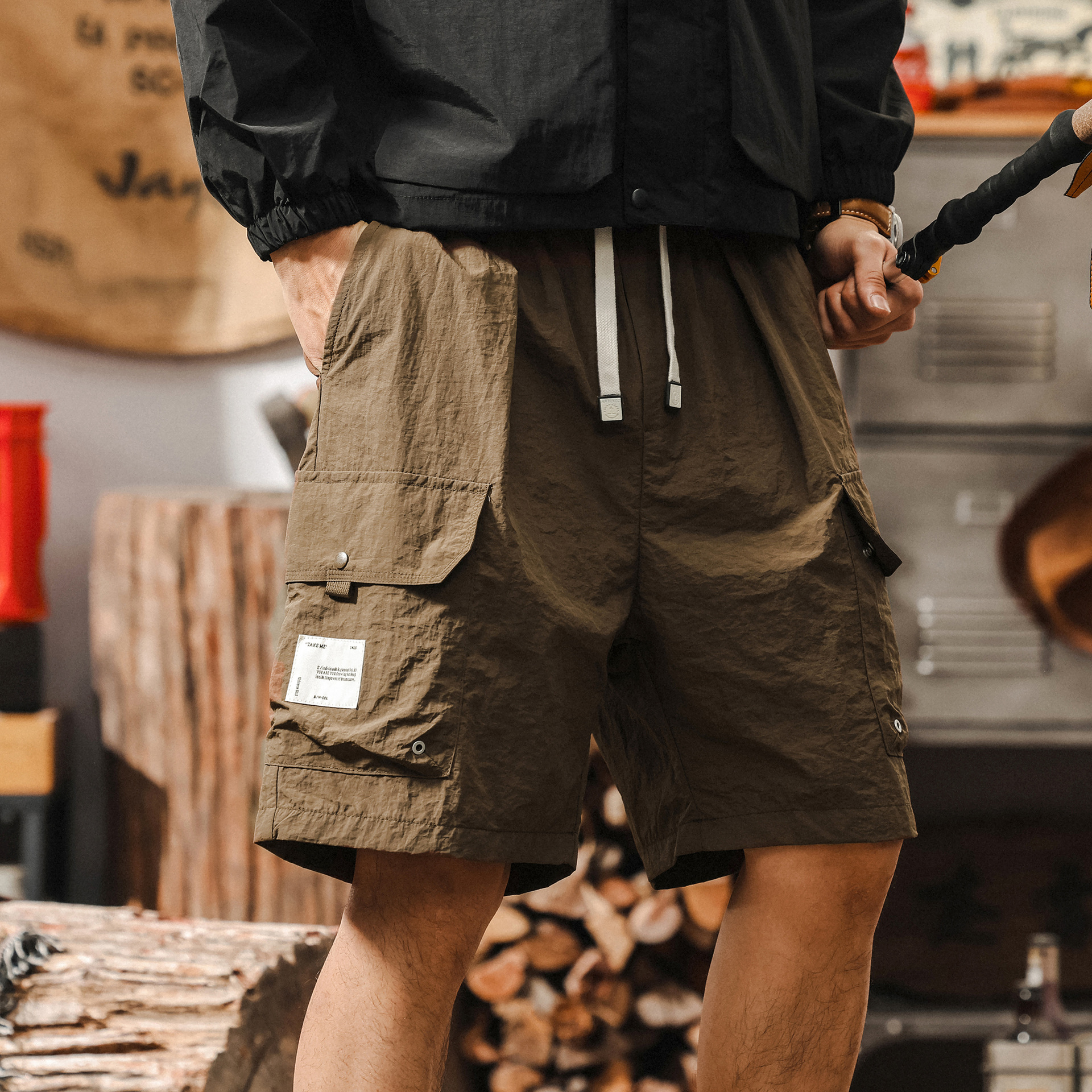 美式復古戶外工裝短褲男夏季薄款冰絲速幹寬鬆直筒潮牌休閒五分褲