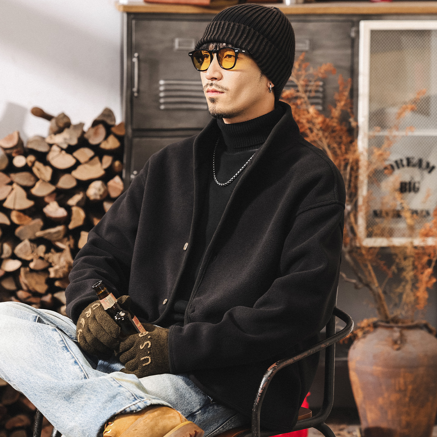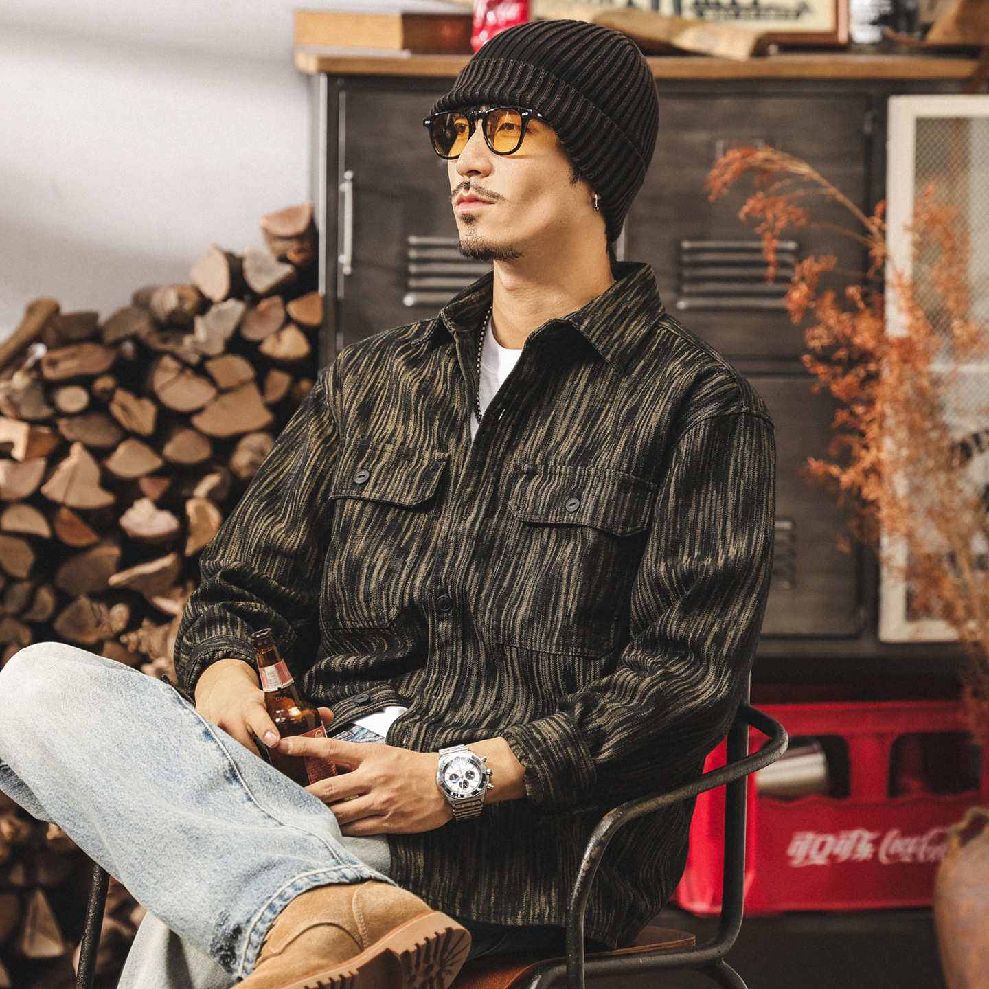 美拉德復古重磅魚骨紋工裝夾克男秋季美式潮牌硬漢獵裝外套男春秋