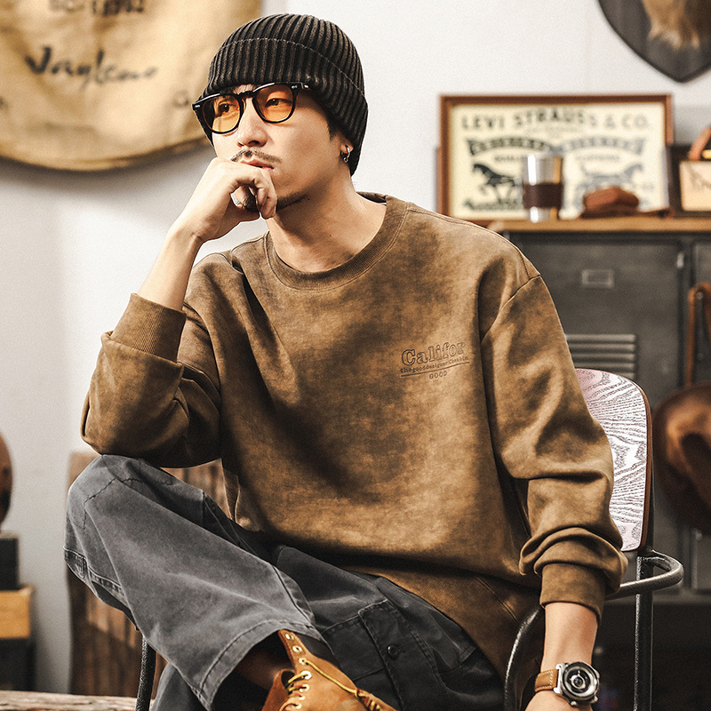 美式復古360g重磅衛衣男秋冬款寬鬆仿水洗做舊潮牌2024新款上衣男