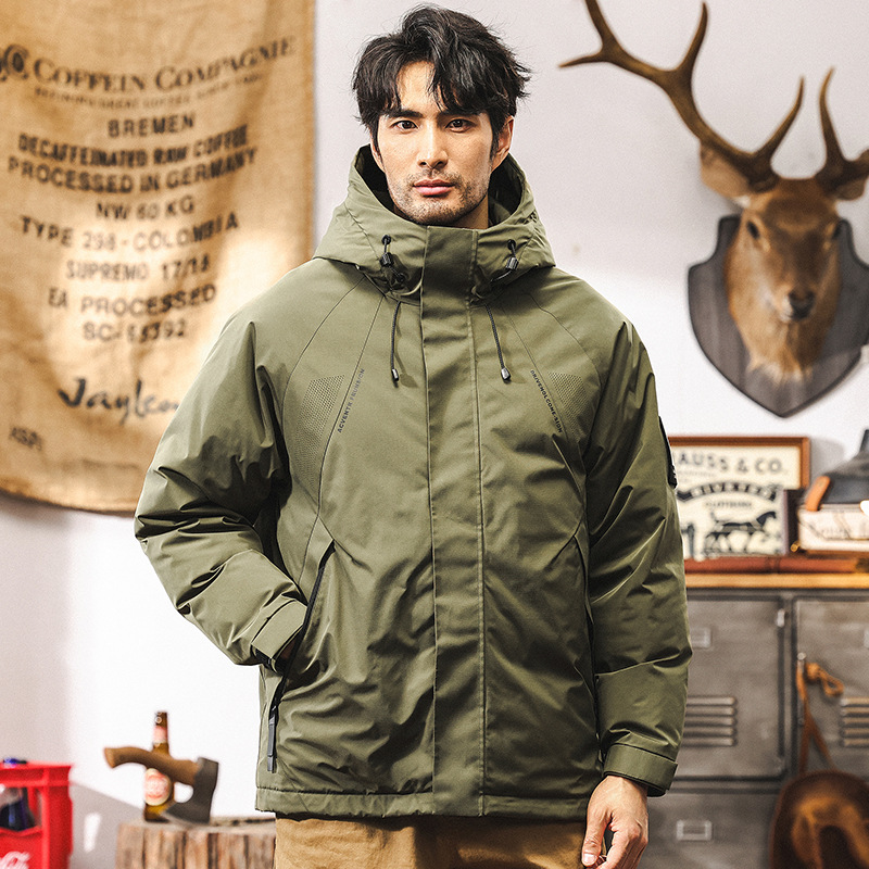90%白鴨絨冬季工裝羽絨服男潮牌美式復古石墨烯機能連帽秋冬外套