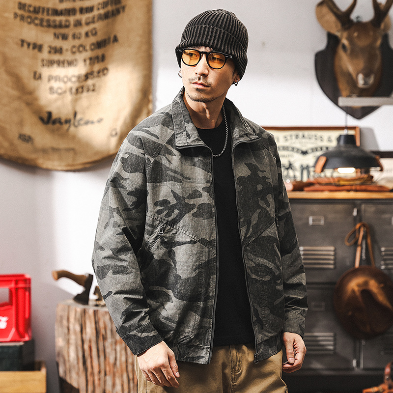 美式復古工裝迷彩夾克男秋季新款潮流痞帥寬鬆短款飛行外套男春秋