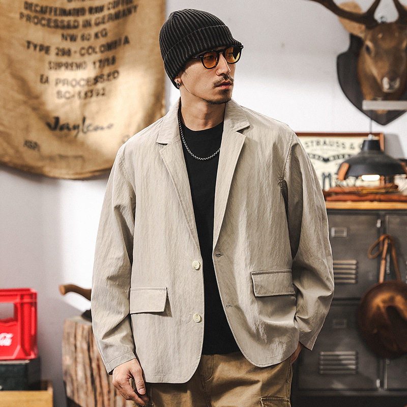 萊賽爾天絲高級感休閒西服男秋季新款寬鬆潮流西裝夾克薄款外套男