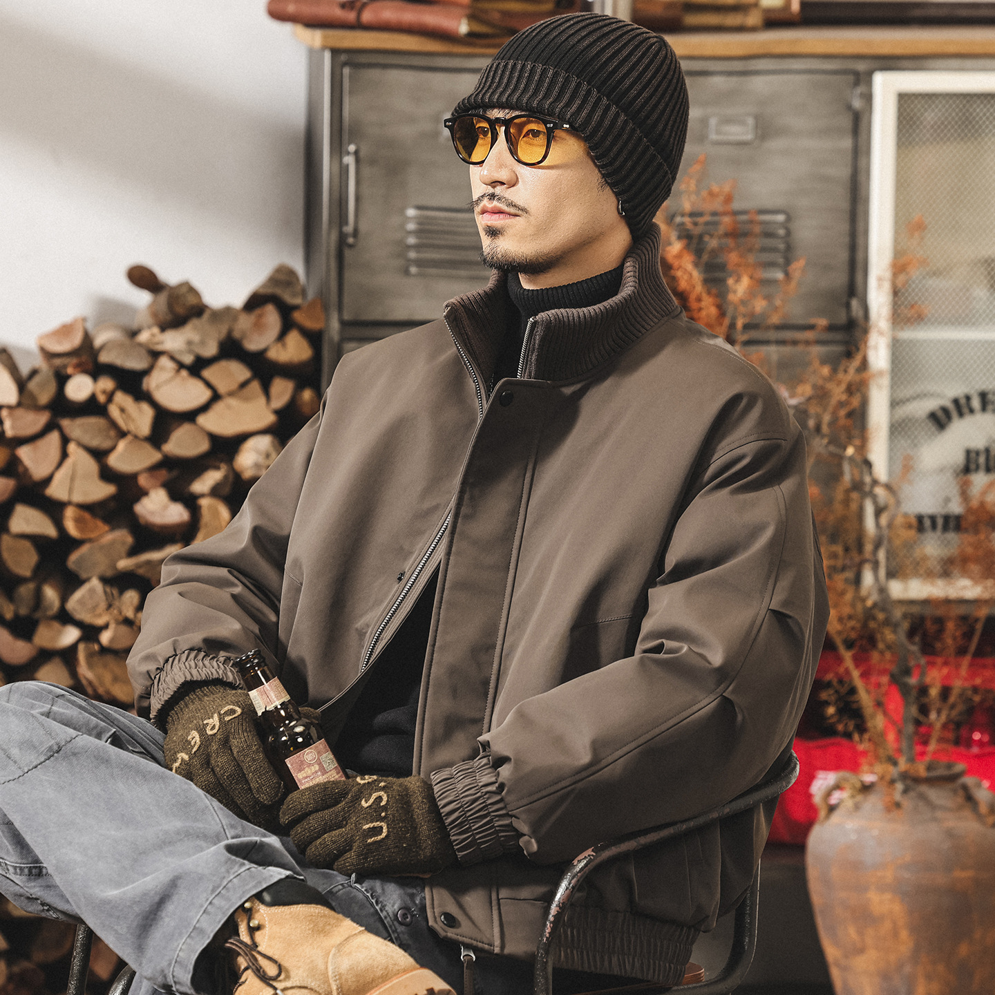 美式復古90白鴨絨針織半高領羽絨服男冬季新款加厚防寒保暖外套男