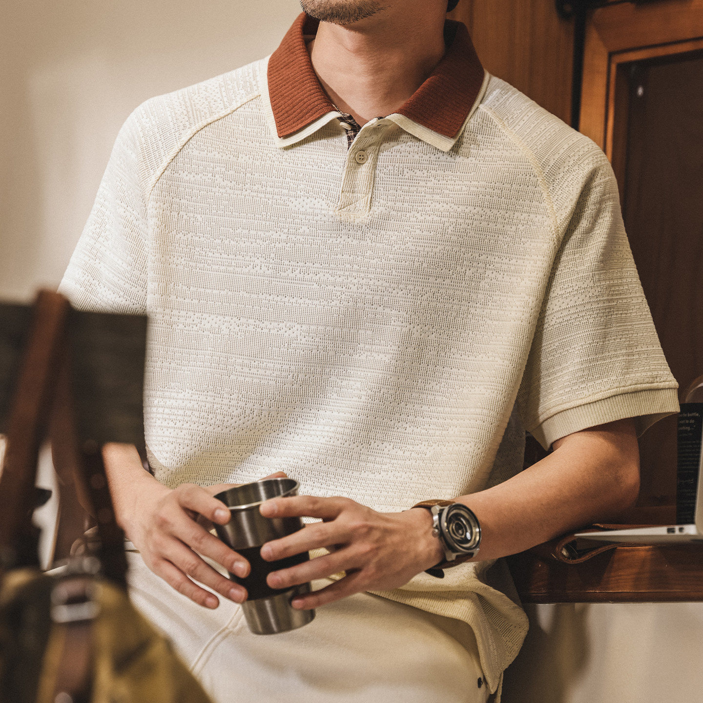 美式復古針織提花Polo衫短袖男夏季潮牌休閒假兩件T恤男寬鬆上衣