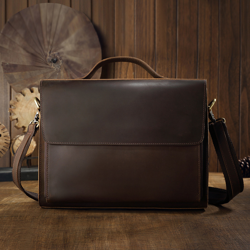 手工真皮公文包男手提包男牛皮復古簡約郵差包商務休閒單肩斜跨包