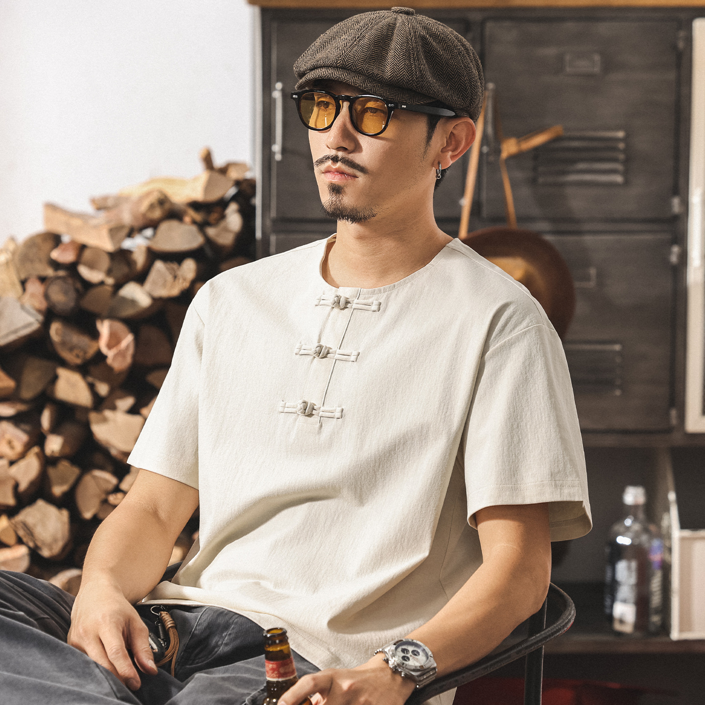 美式復古西西里棉男士T恤夏季2026新款短袖Polo衫男潮牌亨利衫男