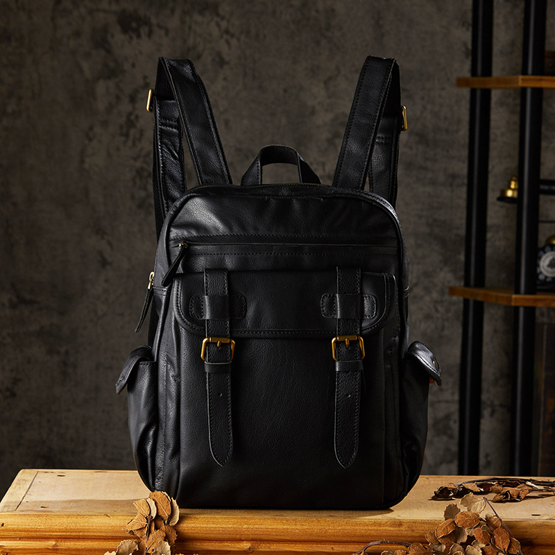 手工牛皮雙肩包男背包女士真皮休閒旅行包電腦包簡約潮流男包女包