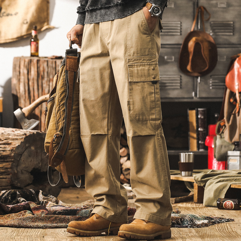 美式復古卡其色工裝褲子男秋季新款獵裝通勤寬鬆直筒男款休閒長褲