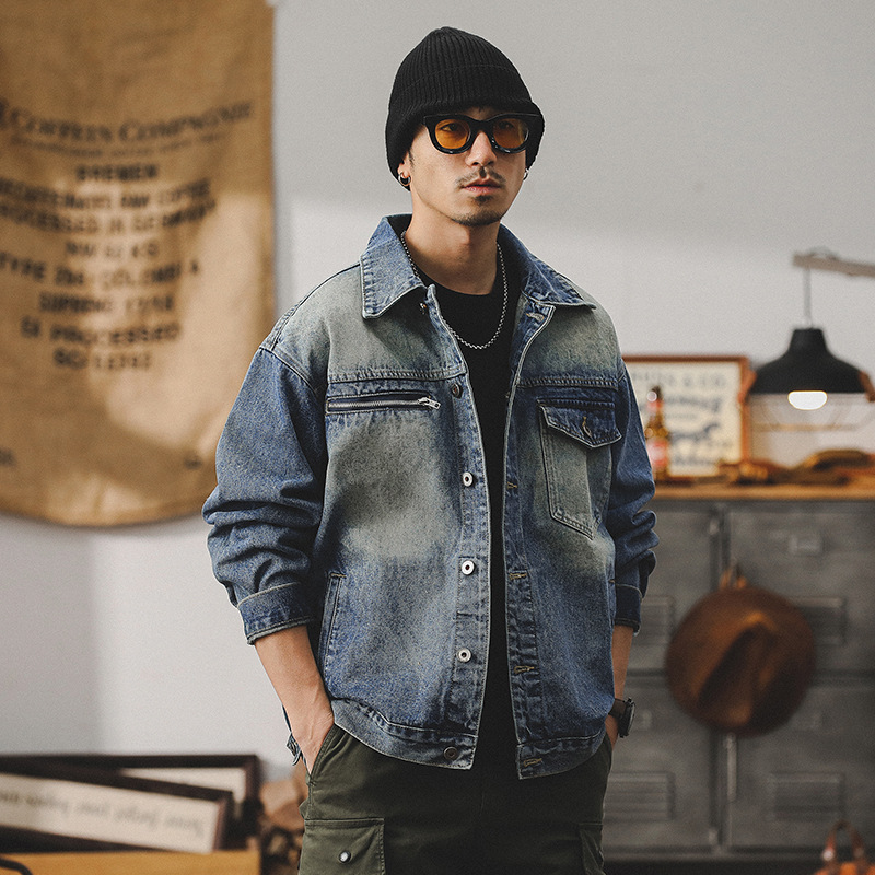 美式經典工裝夾克男春秋2024新款痞帥做舊磨白納米水洗牛仔外套男