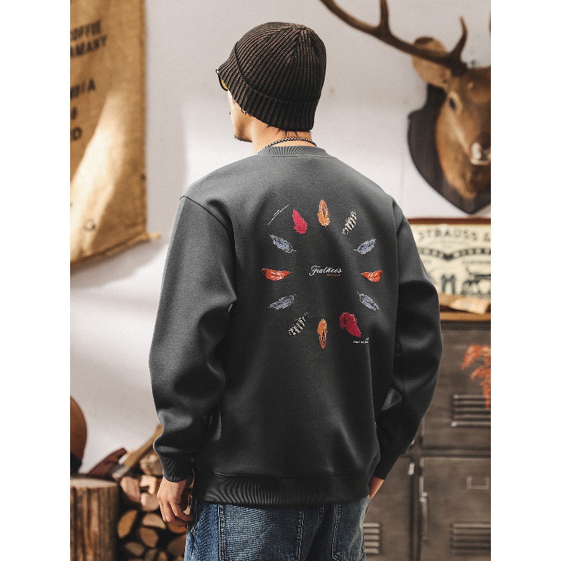 美式復古360g重磅男士秋季衛衣2025新款潮流印花寬鬆長袖圓領上衣