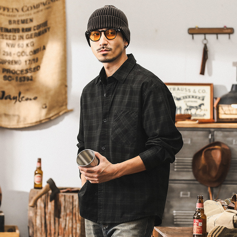 美式復古重磅格子襯衫男外套春季寬鬆大碼2025新款休閒夾克衫襯衣
