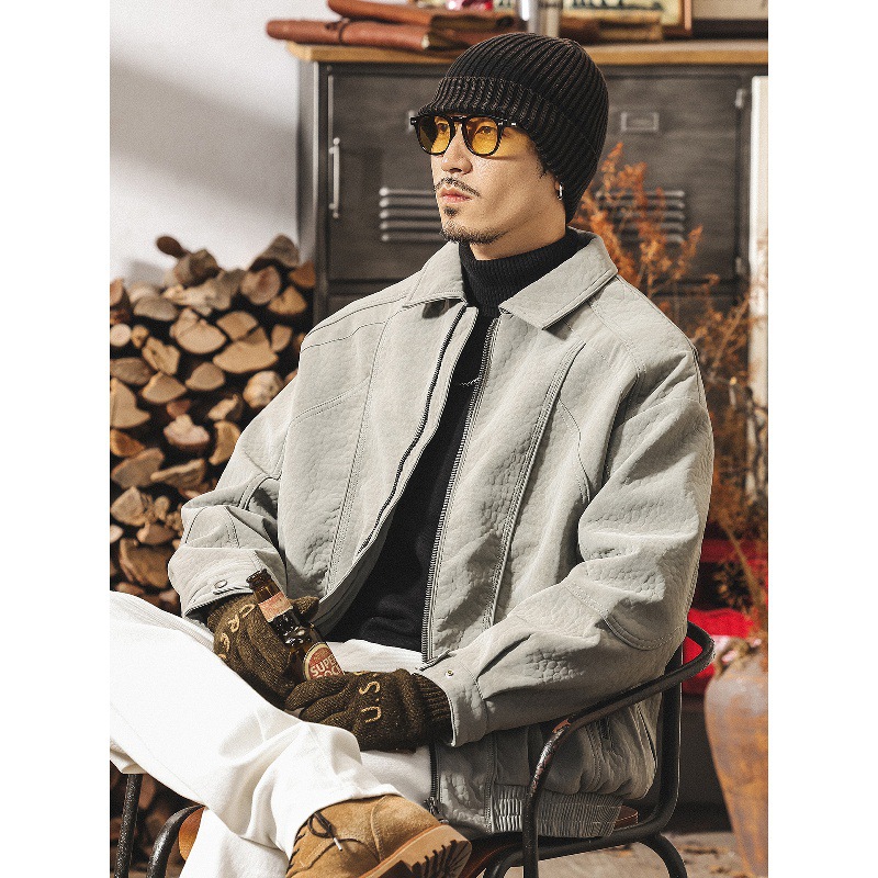 美式復古高級感荔枝紋棉服男士棉衣冬季加厚保暖機車皮夾克外套男