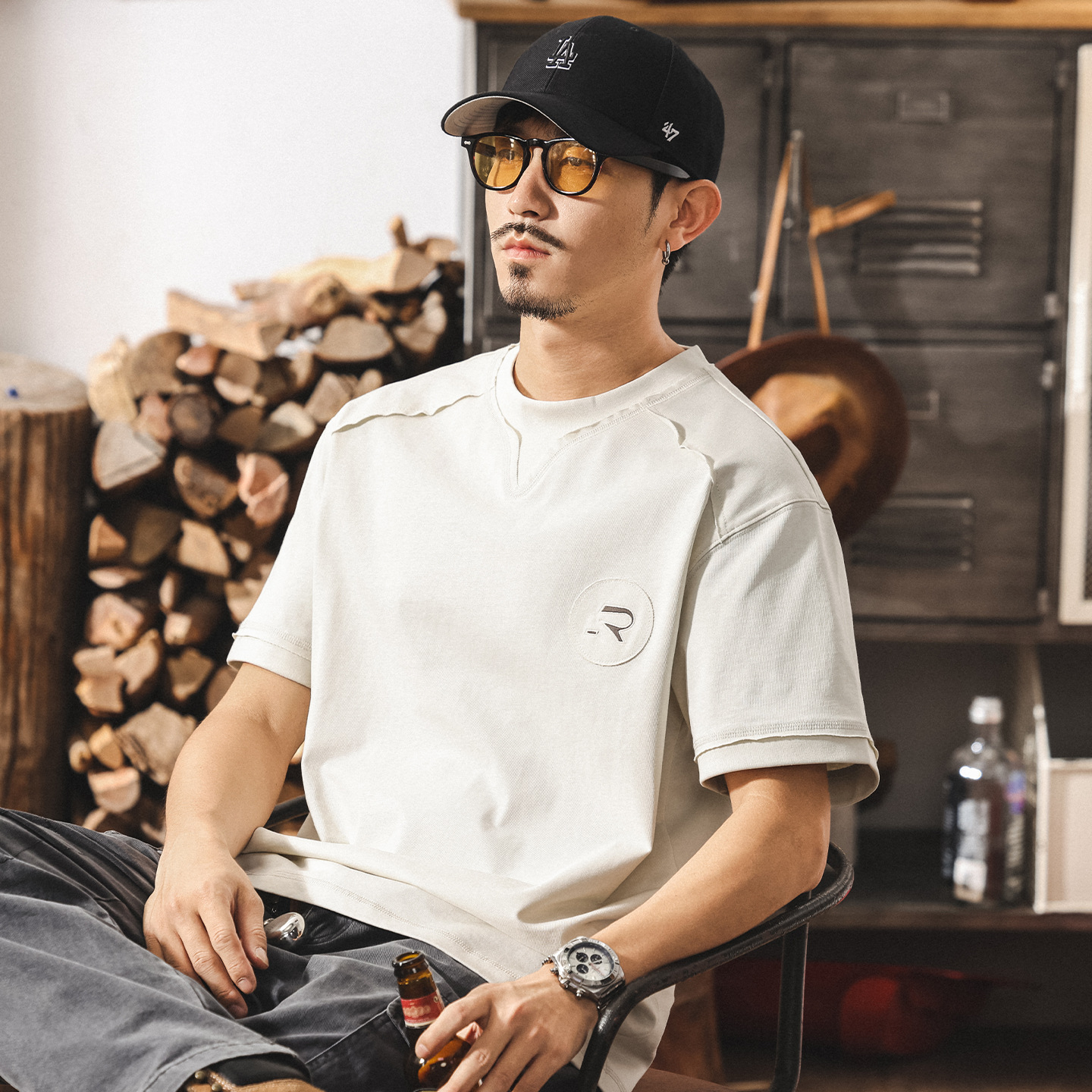 美式復古T恤夏季刺繡短袖男款2025新款寬鬆潮牌貼布印花上衣