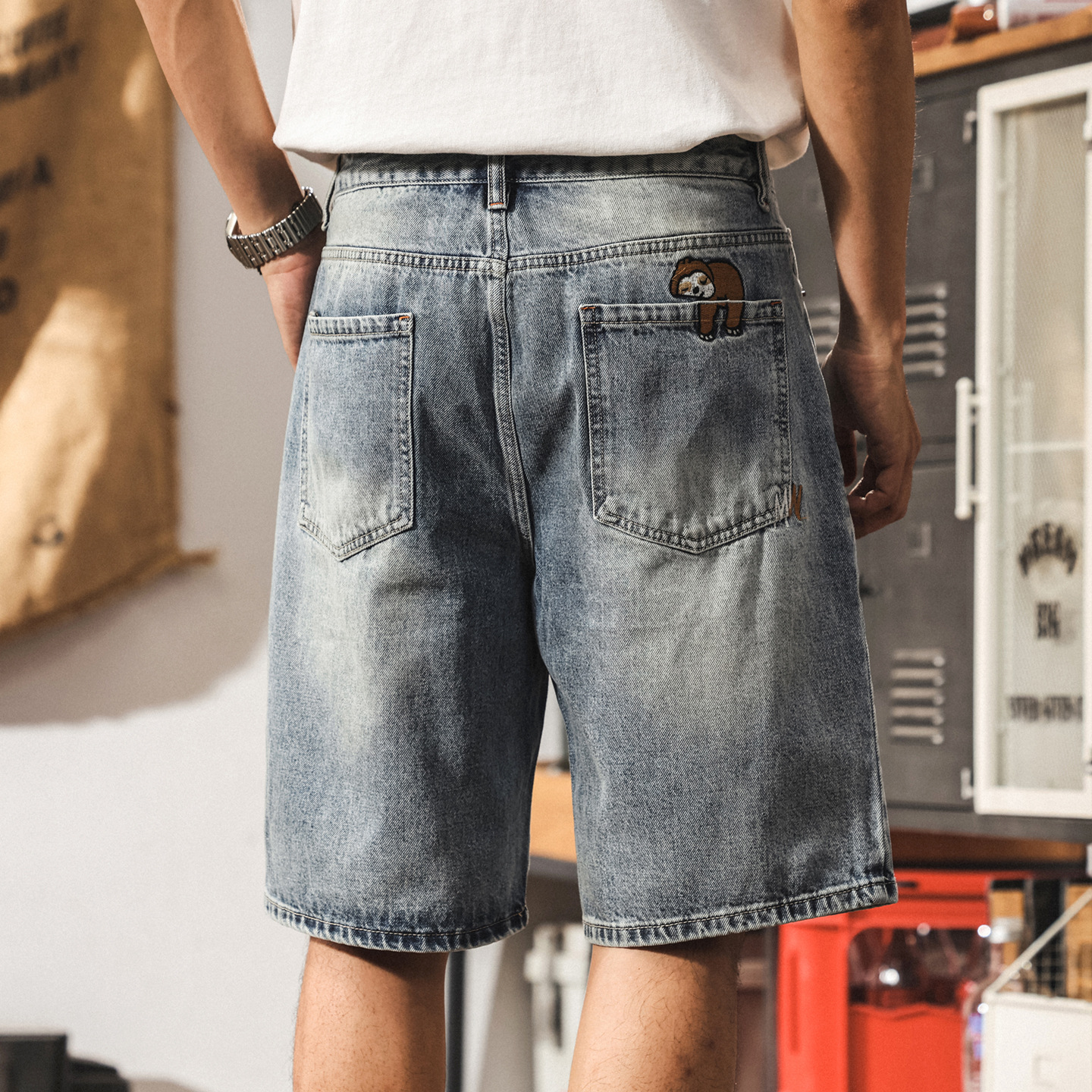 美式街頭潮牌牛仔短褲男夏季復古水洗大碼中褲寬鬆直筒男士五分褲