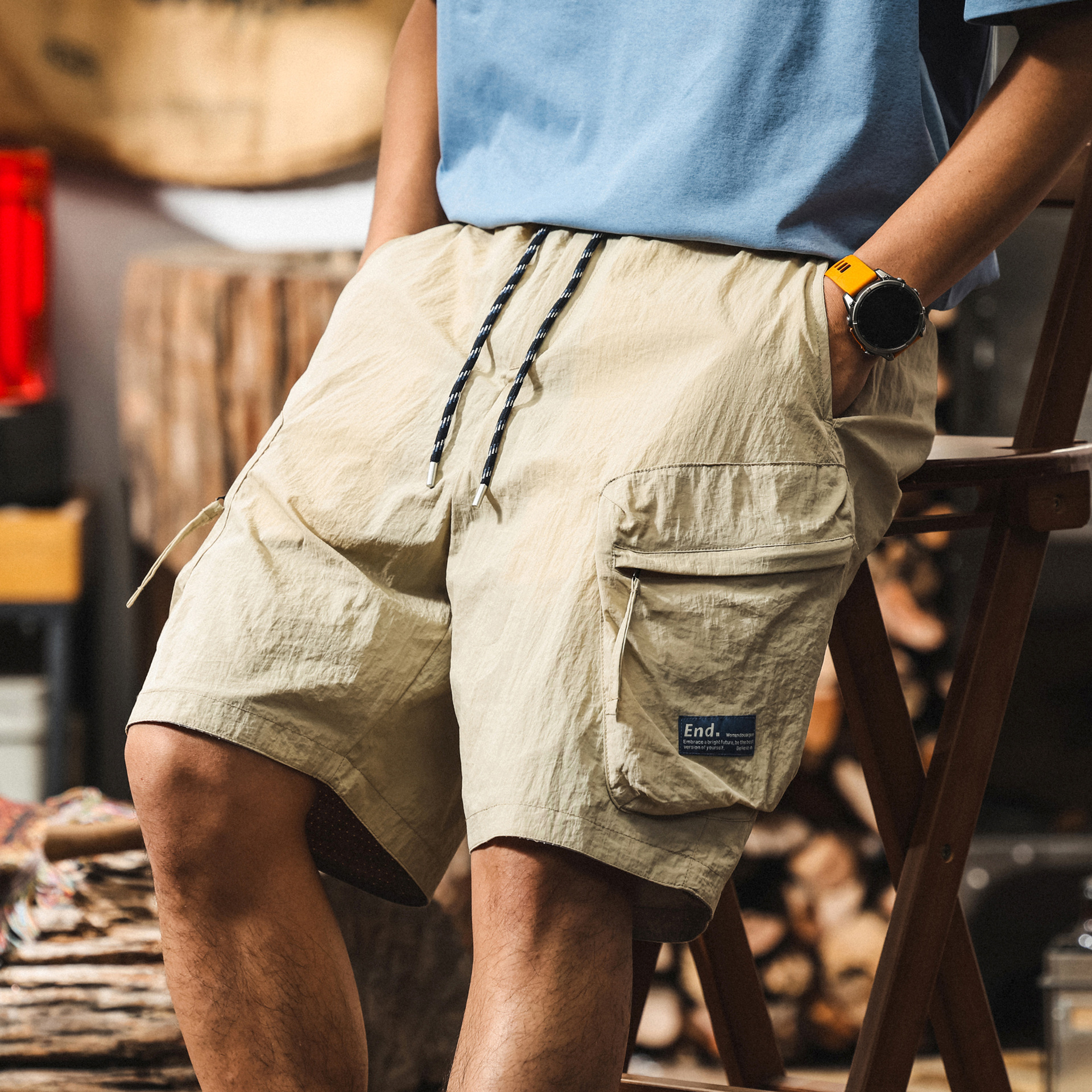 【雙面穿】冰絲涼感工裝短褲男夏季薄款美式休閒褲子男戶外五分褲