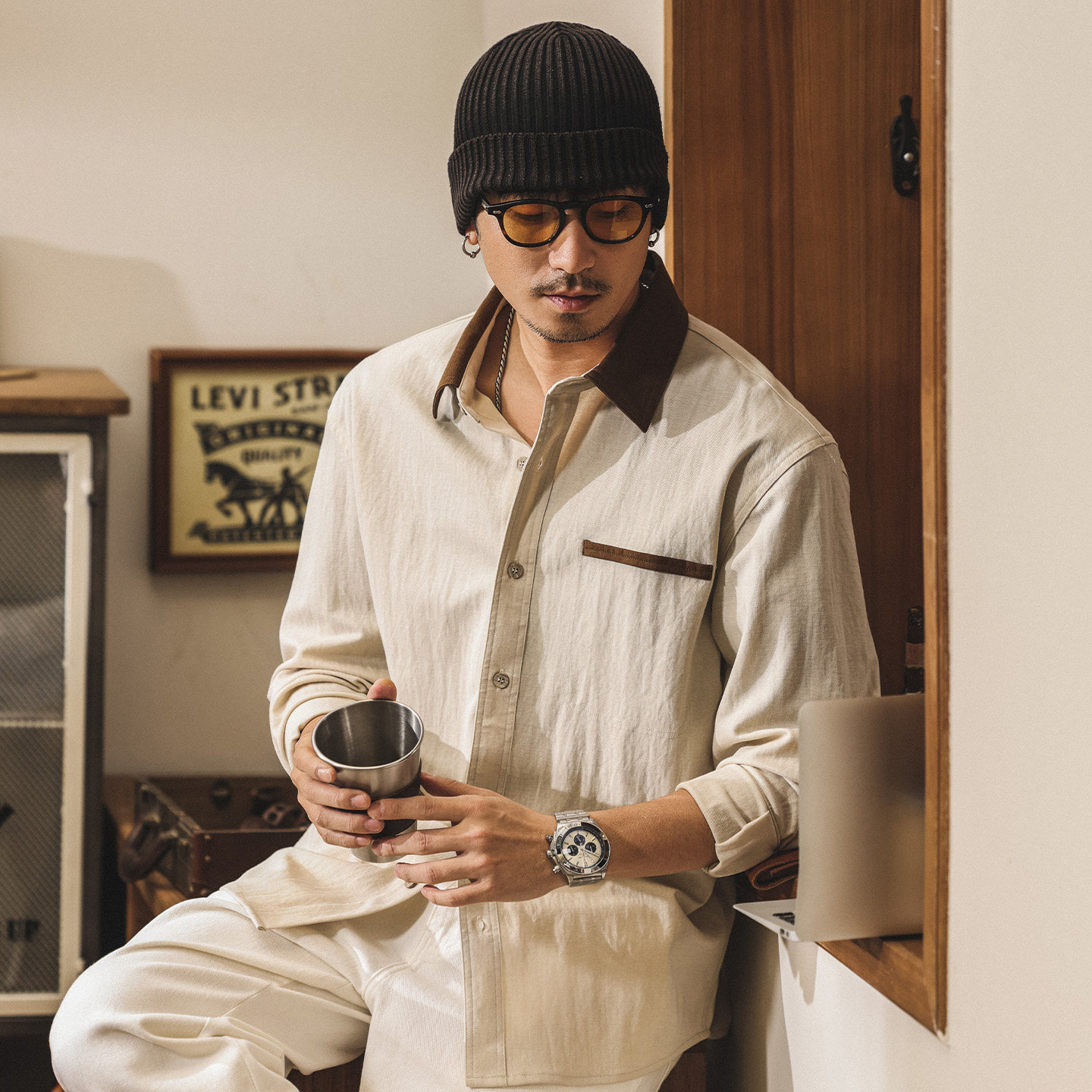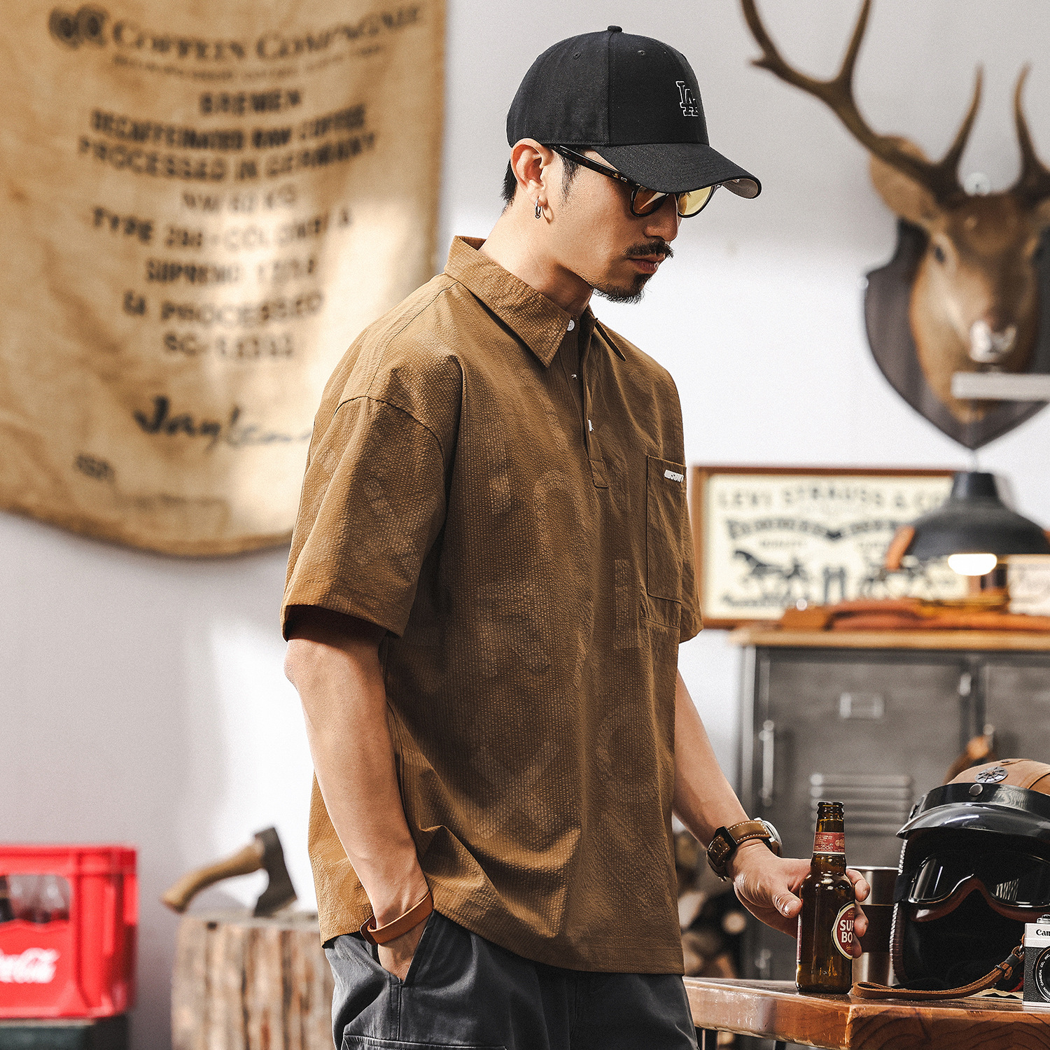 山系戶外工裝襯衫男長袖美式復古2025新款寬鬆硬漢獵裝襯衣外套男