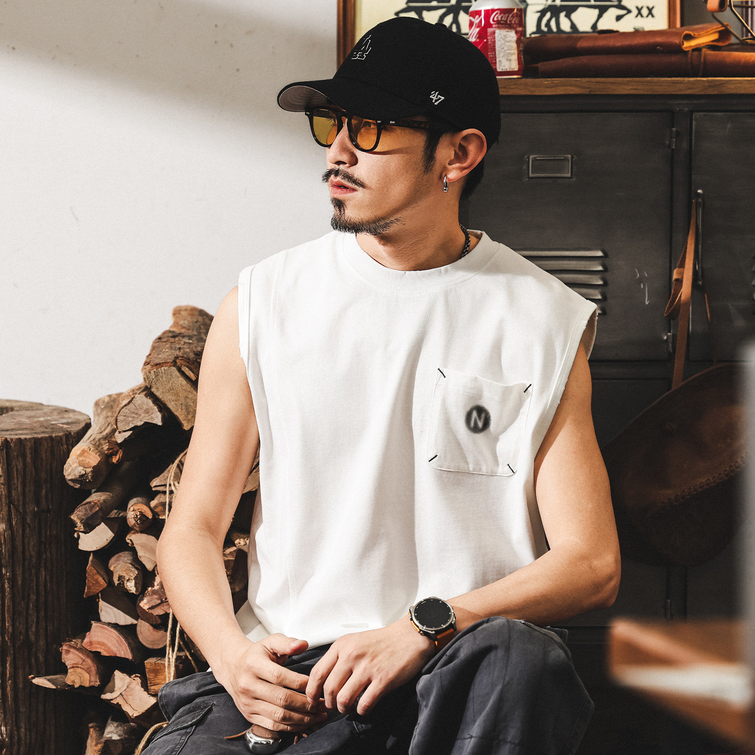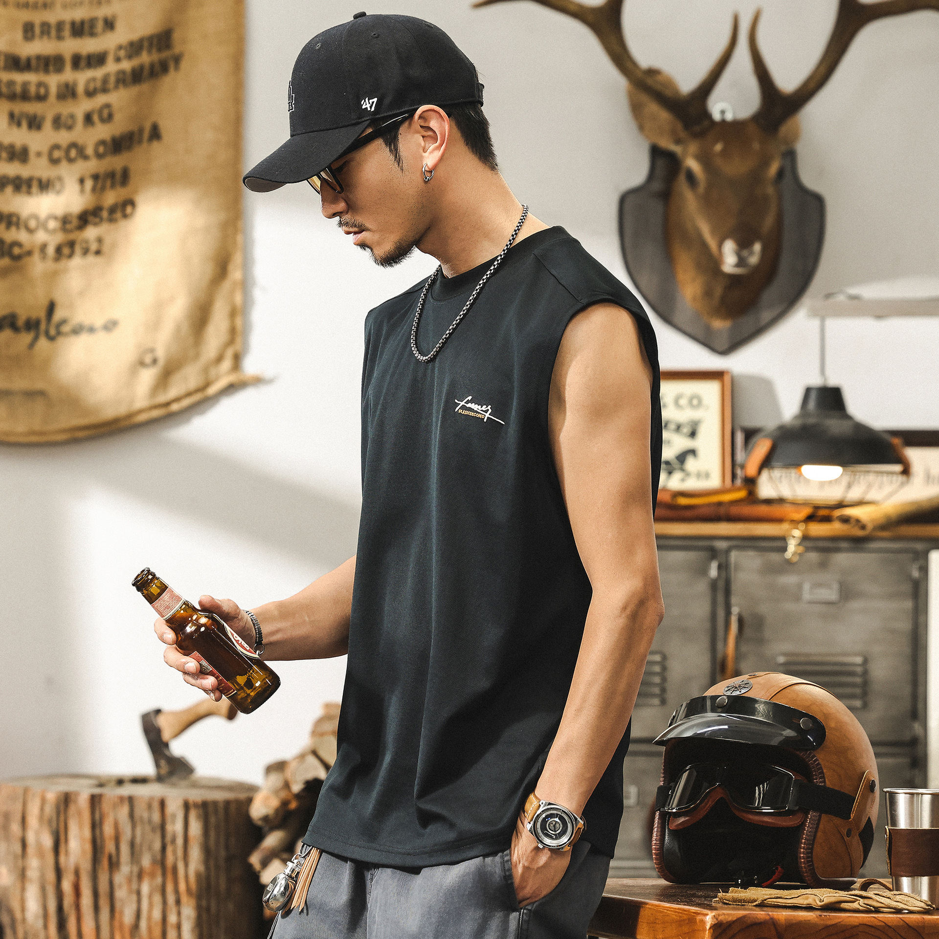 美式復古重磅T恤男2025新款夏季運動健身寬鬆無袖坎肩背心男