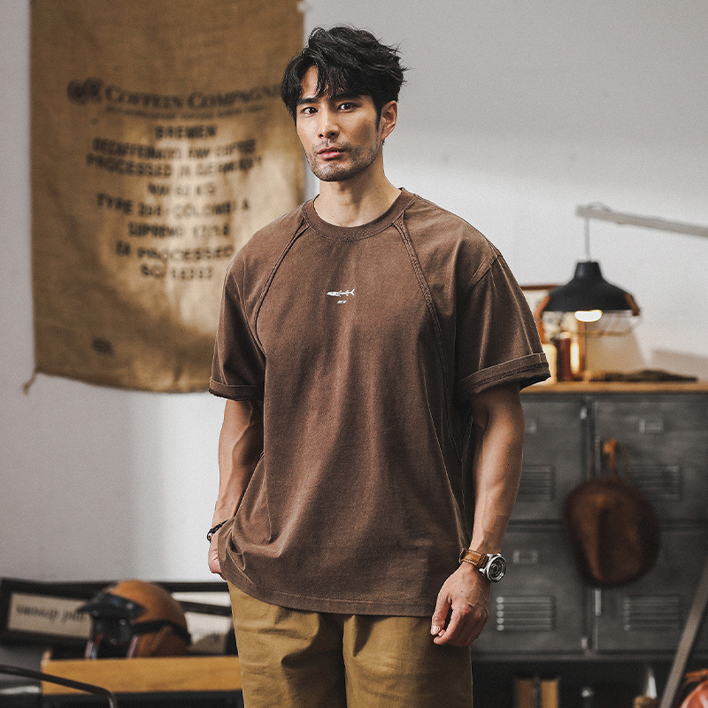 新疆棉拼色短袖男夏季2025新款美式復古寬鬆上衣潮流250g重磅T恤
