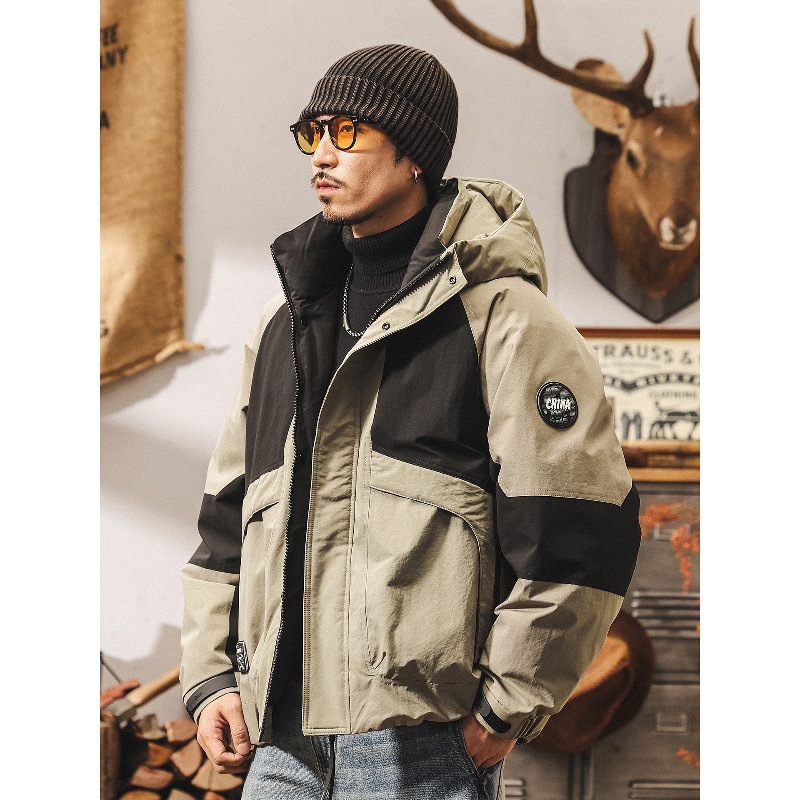 美式復古90%純白鴨絨工裝羽絨服男冬季戶外寬鬆加厚防寒連帽外套