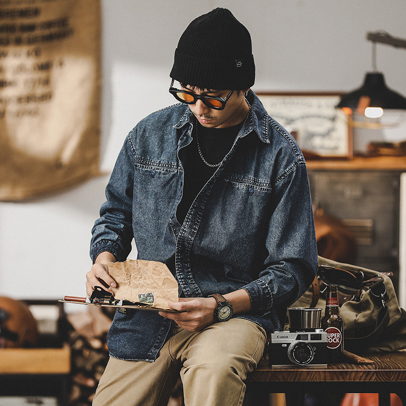 美式復古水洗竹節紋牛仔外套男春秋2025新款潮牌寬鬆痞帥工裝夾克