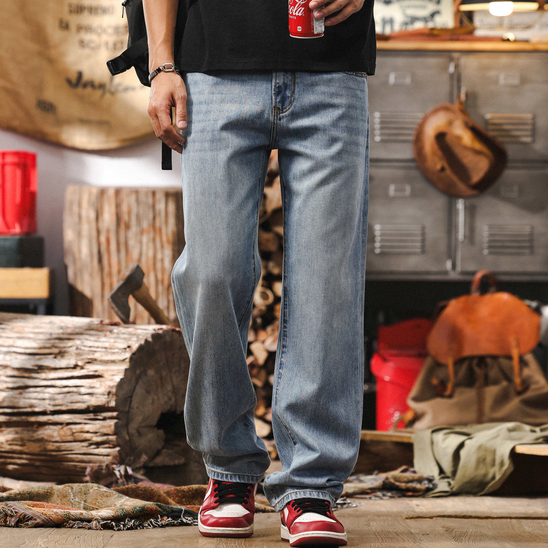 美式復古水洗藍色牛仔褲男2025新款春季潮牌寬鬆直筒男士休閒長褲