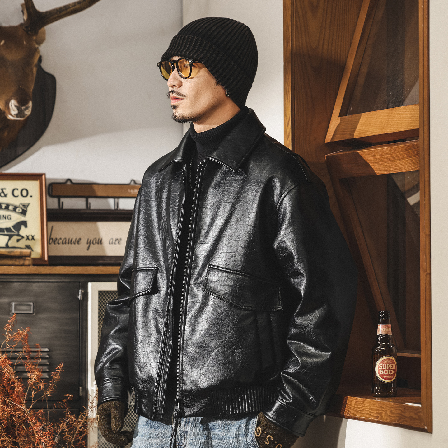 美式復古90%鴨絨機車皮衣羽絨服男冬季加厚保暖潮流皮夾克外套男