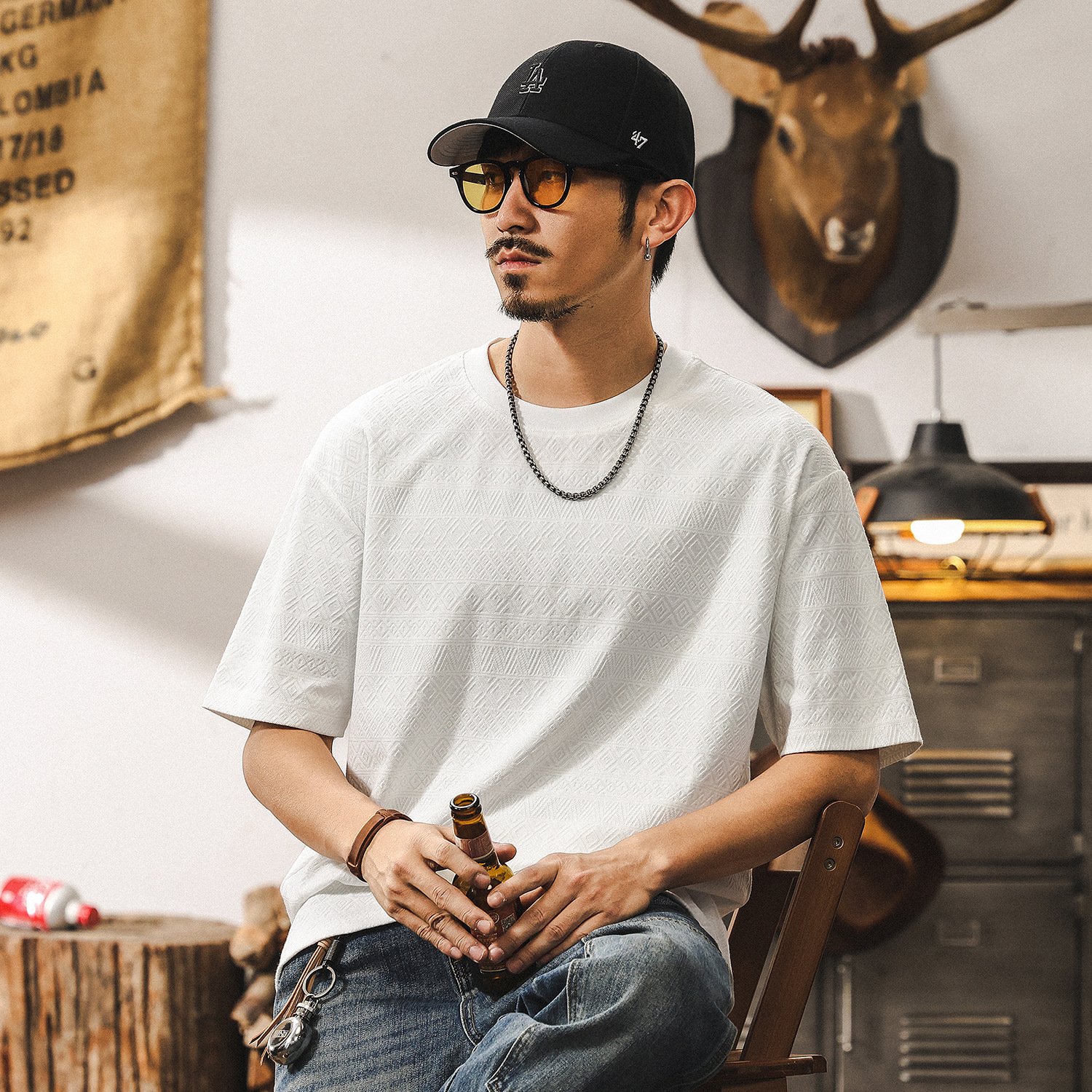 美式復古高級感提花紋理男士T恤夏季短袖2025新款潮牌寬鬆上衣男