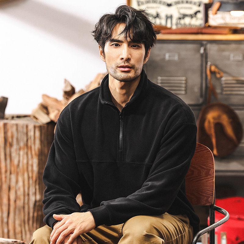 美式重磅復古秋季衛衣男潮流拼接設計感上衣半拉鍊POLO衫男秋冬款