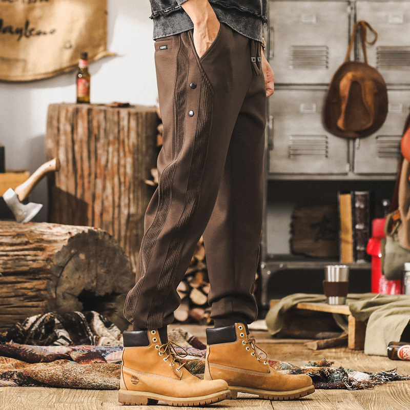 美式復古高級感空氣層抗皺休閒褲男秋冬款加絨潮牌寬鬆運動束腳褲