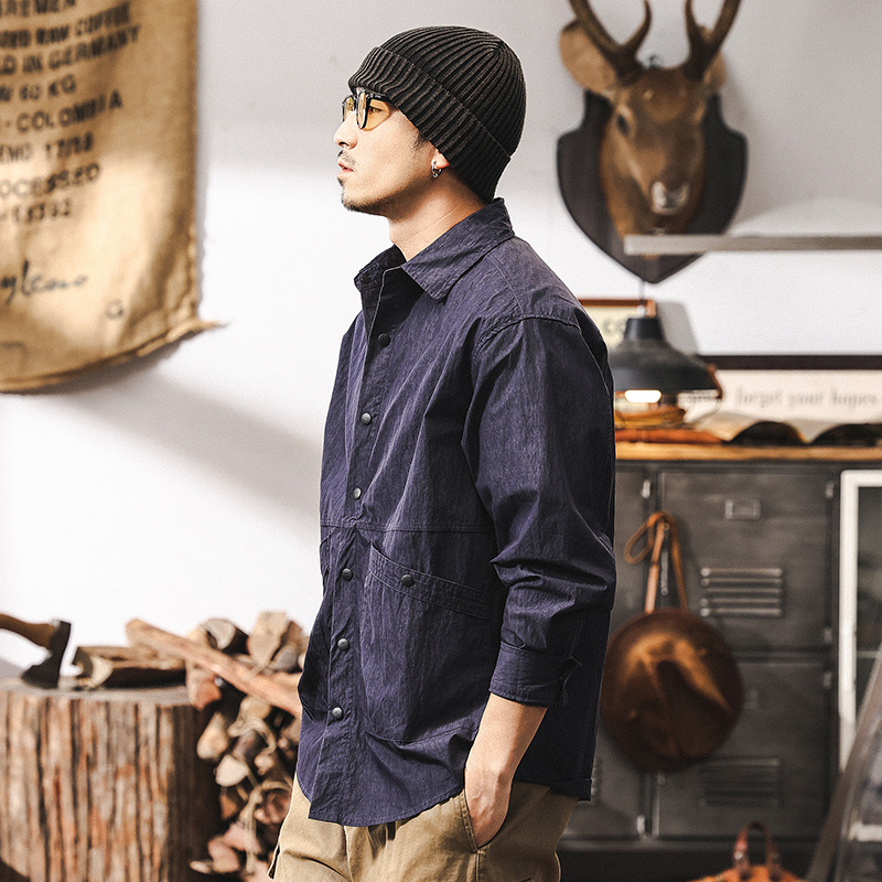 美式山系戶外棉錦工裝襯衫男薄款秋季外套潮牌寬鬆休閒長袖襯衣男