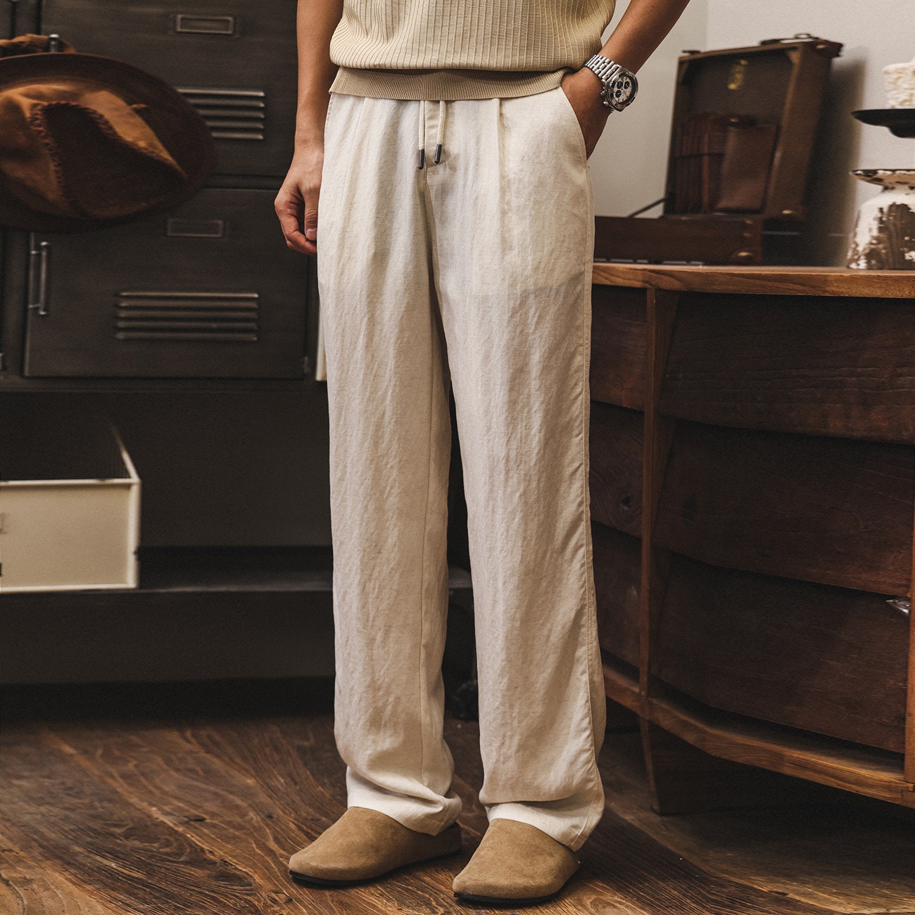萊賽爾復古亞麻莫瑞老錢風褲子男夏季潮牌超薄款鬆弛感休閒直筒褲