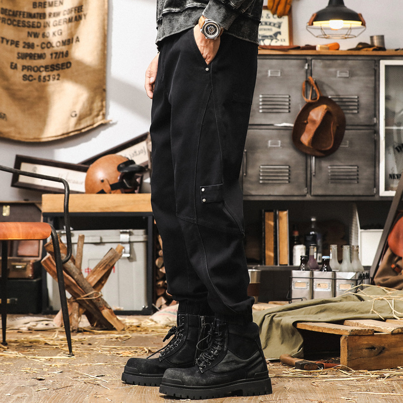 美式復古工裝褲男秋季2024新款潮牌休閒束腳長褲寬鬆水洗黑色褲子