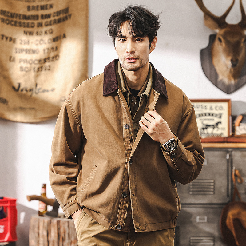 美式復古重磅工裝外套男秋冬款經典N-1甲板服阿美咔嘰休閒夾克男