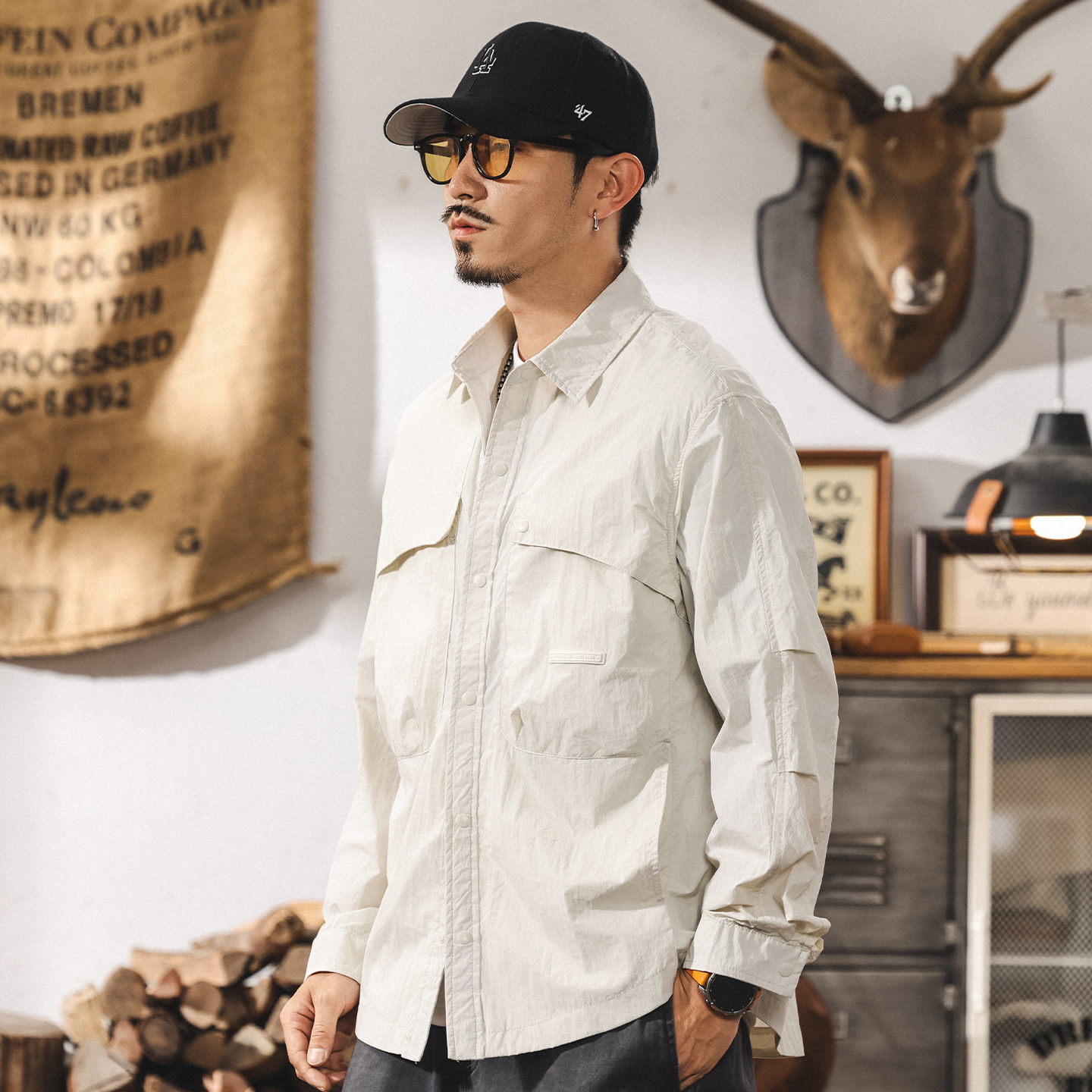 杰雷諾美式復古重磅春季工裝襯衫男長袖阿美咔嘰襯衣外套男春秋款