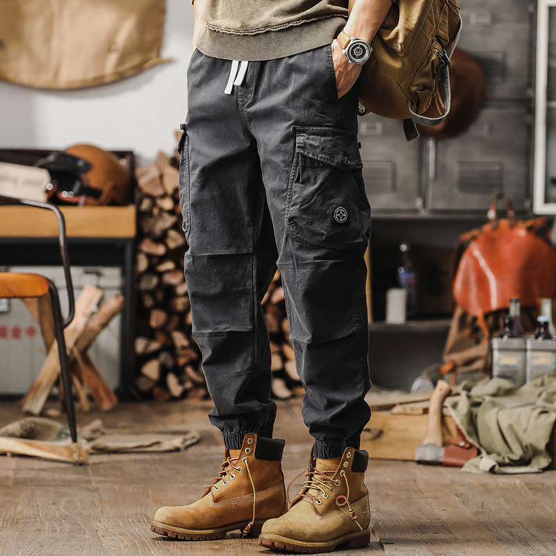 美式潮牌卡其色工裝褲子男秋季多口袋機能束腳褲戶外通勤休閒男褲