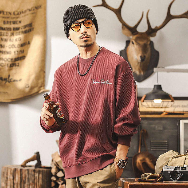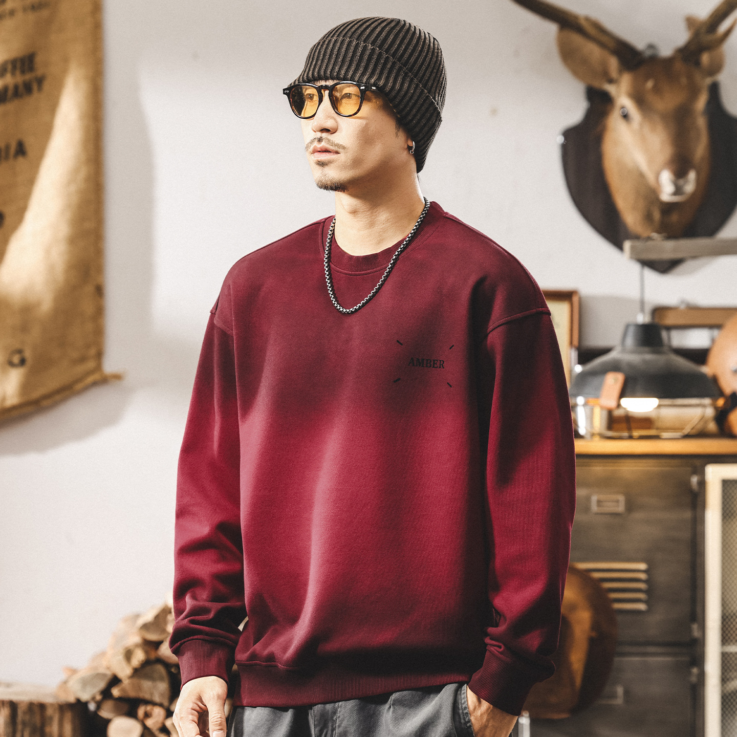 美式復古重磅圓領男士衛衣春秋新款潮牌安可拉紅寬鬆休閒秋季上衣
