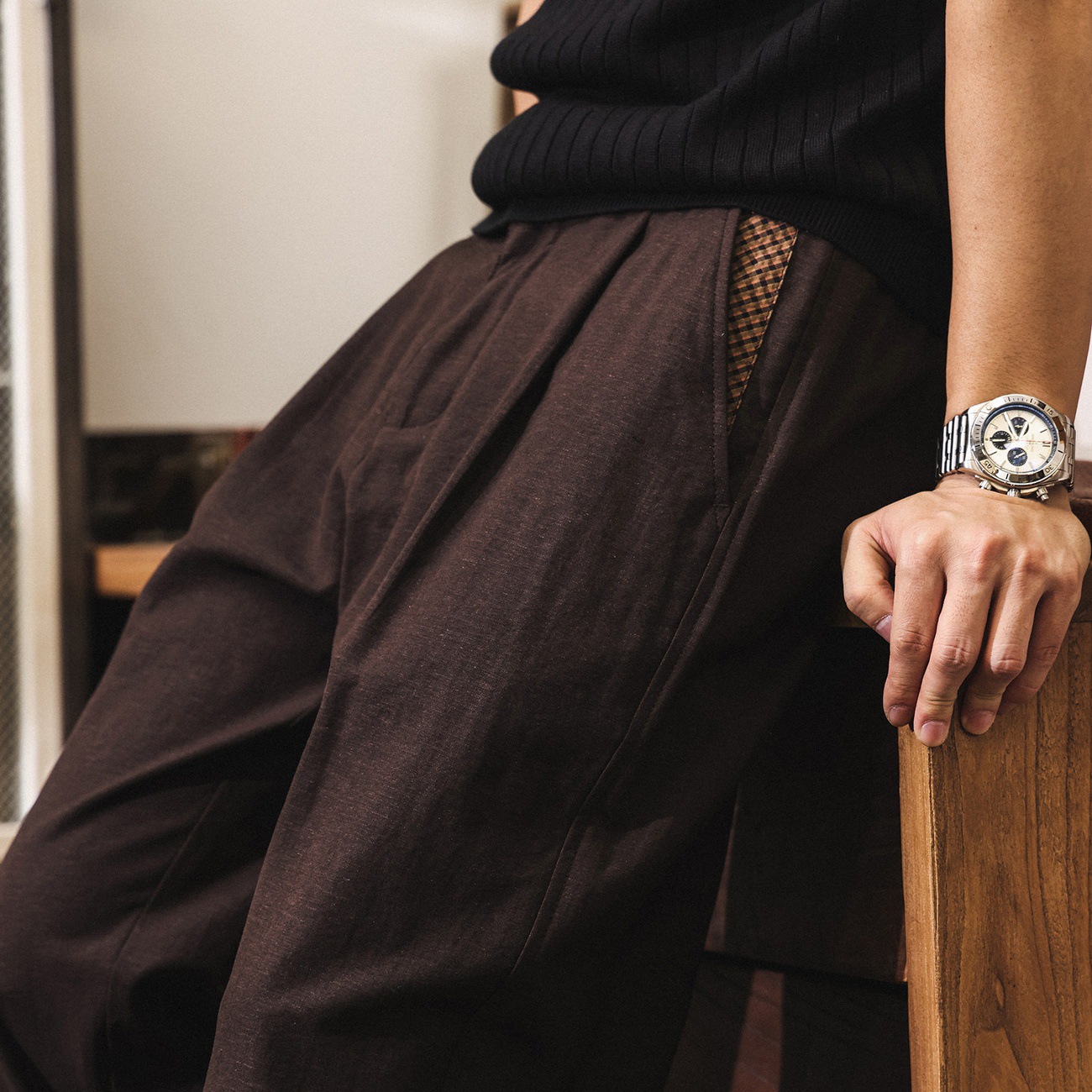 萊賽爾垂感復古莫瑞老錢風亞麻褲子男夏季薄款寬鬆休閒直筒長褲男