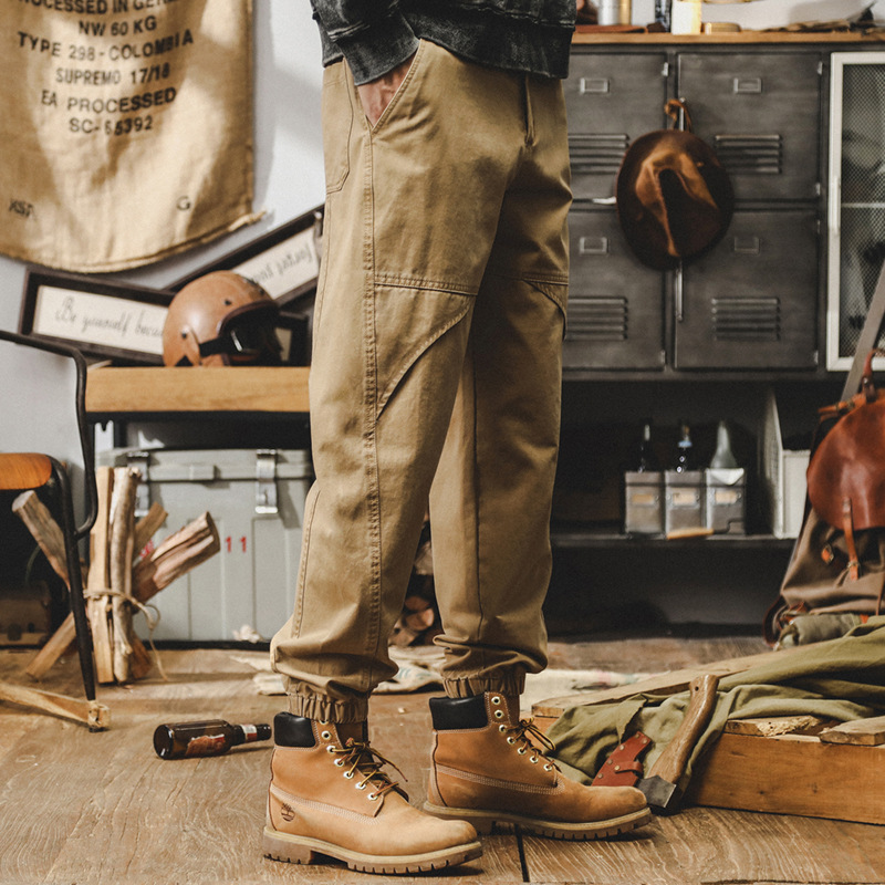 美式復古休閒褲男秋季潮牌寬鬆大碼束腳褲戶外工裝男士卡其色褲子