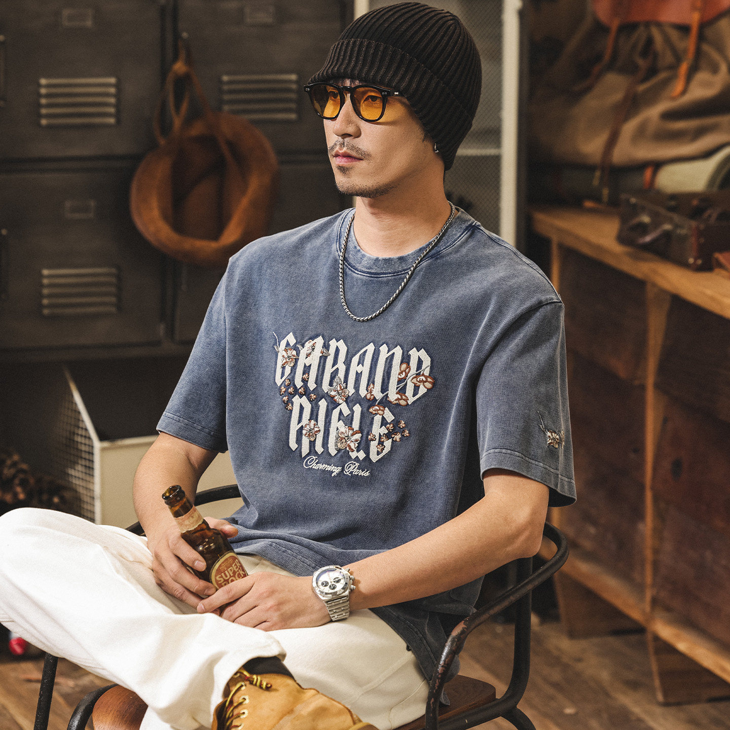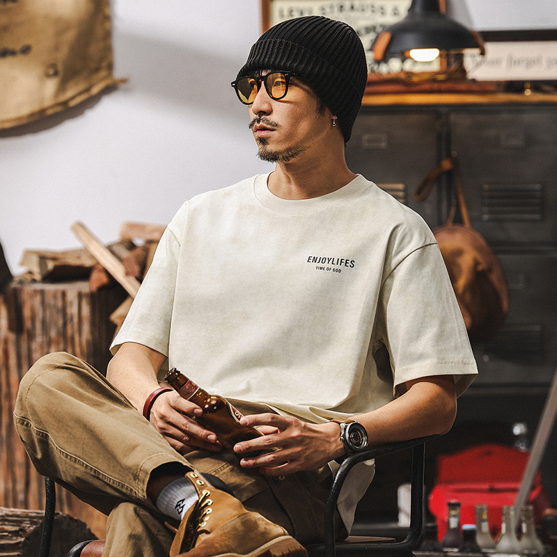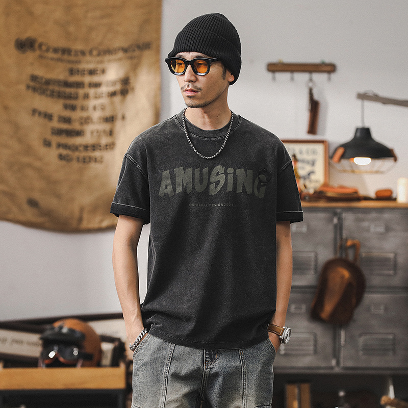 美式復古做舊水洗T恤男夏季2025年新款男士短袖260g重磅體恤