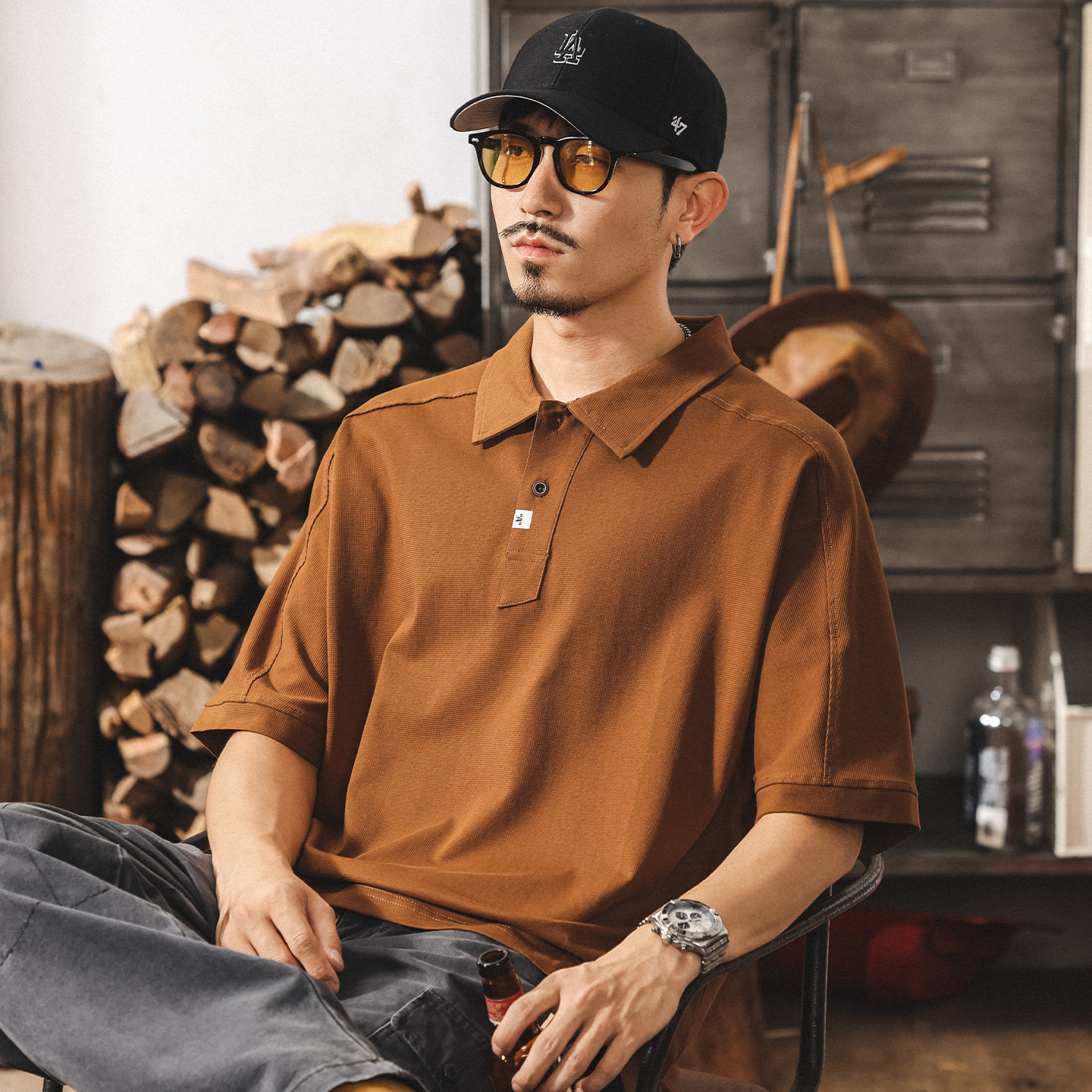 美式復古男士Polo衫短袖男夏季潮流新款寬鬆潮牌索羅娜涼感t恤男T
