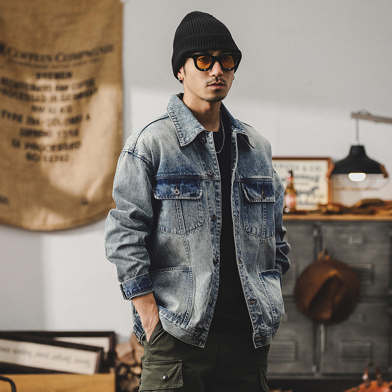 美式重磅賽洛紡牛仔外套男春季潮牌經典復古納米水洗休閒工裝夾克