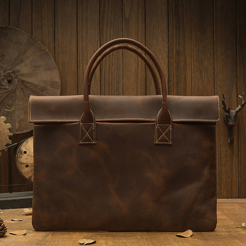手工男士手提包日韓真皮手拿男包包商務牛休閒公文包輕薄款電腦包