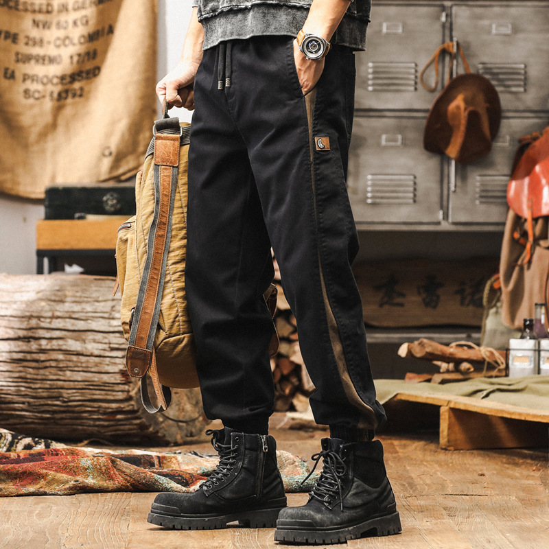 美式復古拼接工裝褲子男寬鬆直筒秋季2025新款戶外潮牌男士休閒褲