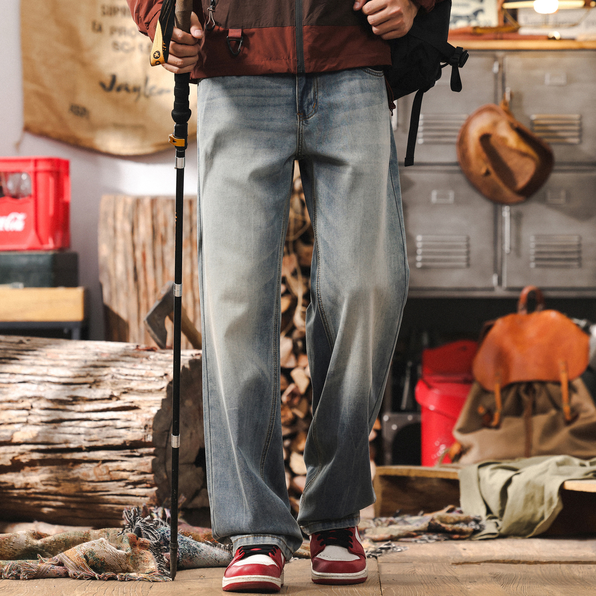 美式復古闊腿牛仔褲男春季2026新款潮牌水洗休閒褲寬鬆直筒長褲男