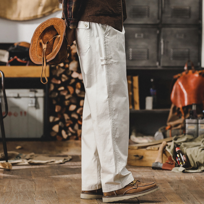 美式復古米白色工裝褲子男春季2025新款直筒長褲潮牌寬鬆休閒長褲
