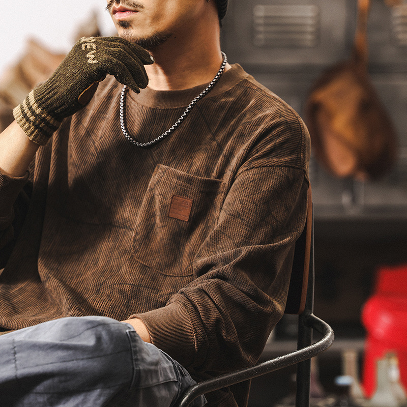 美拉德復古仿羊毛燈芯絨條紋襯衫男長袖春秋潮牌寬鬆休閒襯衣外套