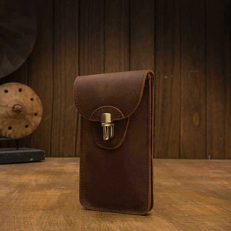 手工真牛皮手機包男士腰帶包多功能掛包瘋馬皮穿皮帶腰包便捷小包