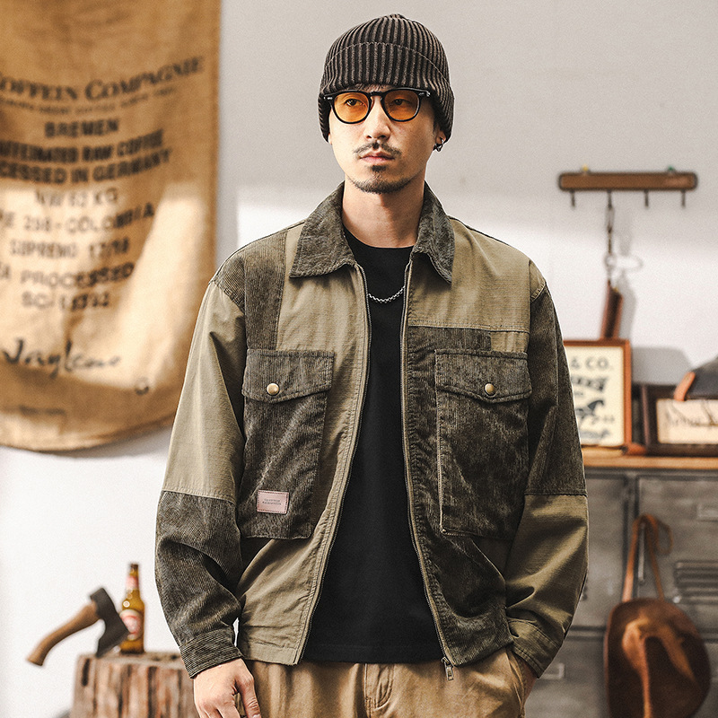 美式重磅復古燈芯絨工裝外套男秋冬款潮流拼接寬鬆休閒夾克男秋季