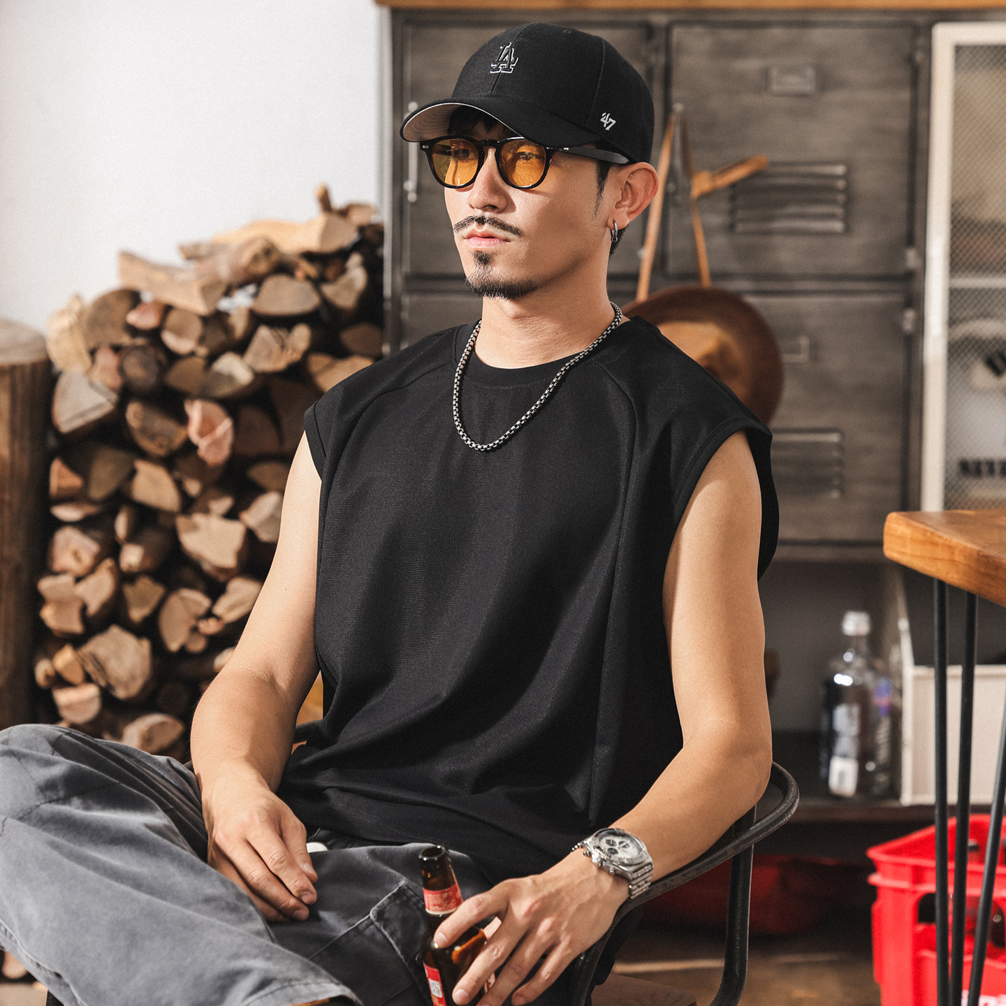 冰絲速乾健身運動背心男款夏季2025新款潮牌寬鬆無袖t恤坎肩上衣